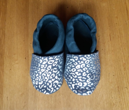 Chaussons en cuir Léopard argenté, tailles 18-33